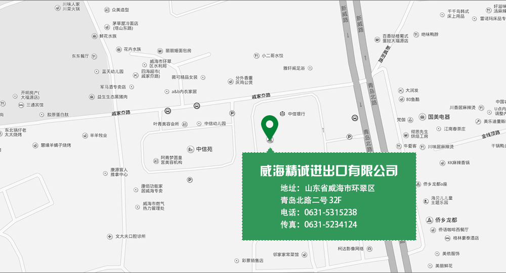Copyright ? 2015 版權(quán)所有:威海精誠進(jìn)出口有限公司 電話:0631-5315238、5234124